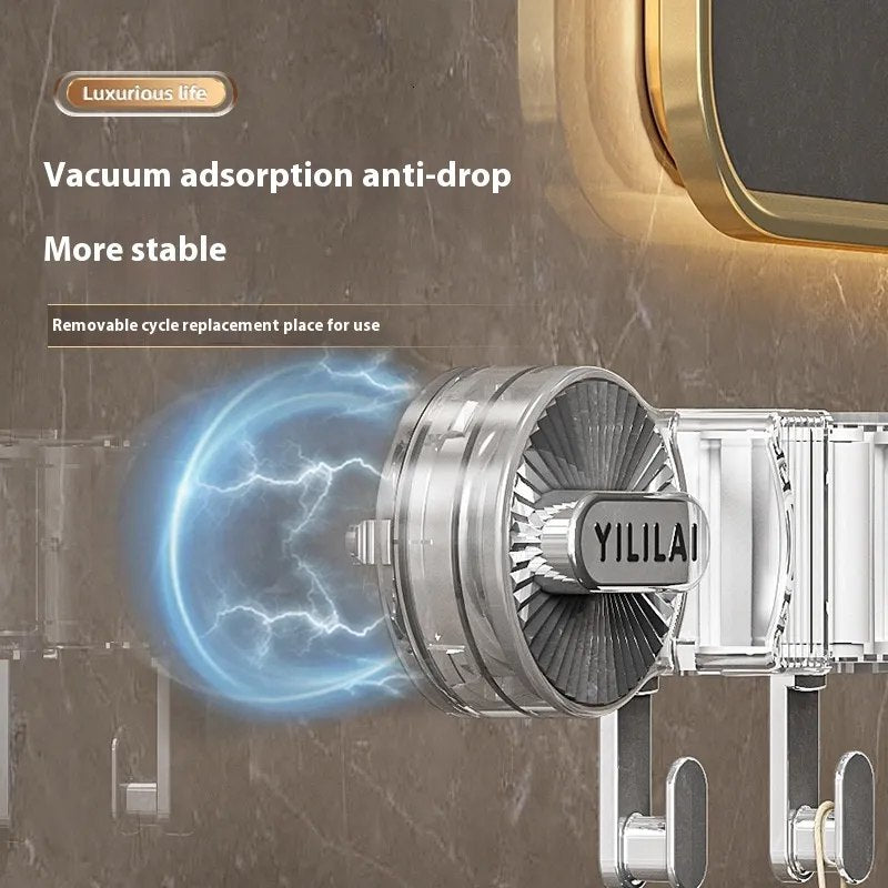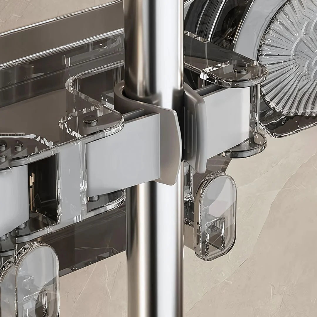 Wall-Mounted Mop & Broom Organizer – Suction Cup Rack with Hooks for Household Cleaning Storage